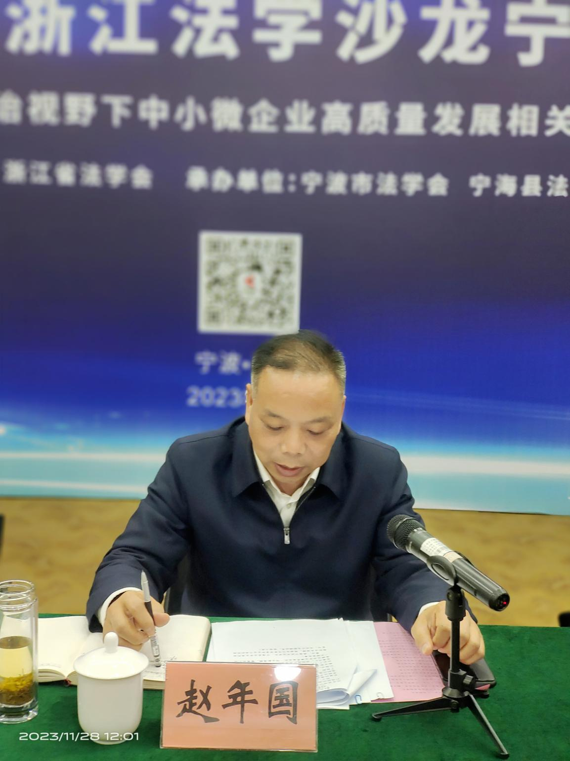 11月28日,2023年浙江法学沙龙宁海专场在宁海生物产业园区举行,深入探讨法治视野下中小微企业发展问题。浙江省法学会党组成员、秘书长赵年国主持并讲话。